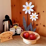 La cocina también dispone de un hervidor eléctrico. La distancia al aeropuerto Salzburgo es de unos 180 km.